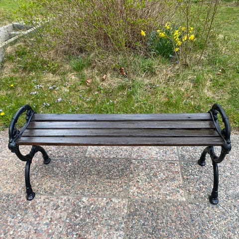 Byarum Trädgårdsbänk med vit gjutjärnsstomme och träsits