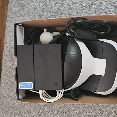 Hej hej! Här säljer jag mitt Playstation4 VR med alla kablar samt en manual som visar hur man sätter ihop allting. Allting är i bra skick men har vissa små märken som knappt är märkbara. Jag säljer eftersom att jag uppgraderat till PS5 så därför kan jag inte längre använda detta Headset som bara är kompatibelt med ett PS4. Jag har inte kvar själva lådan man får men alla sladdar och sånt är här. Är du intresserad eller har några frågor är det bara att Skriva så återkommer jag