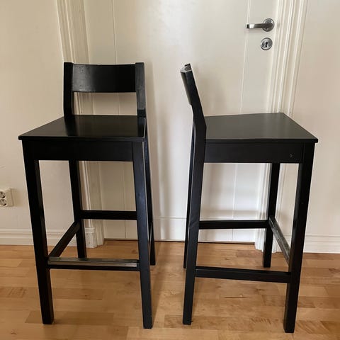 2 st Ikea barstolar, har för mig de heter ingolf. Väldigt lite använda. 63cm från sittdelen till golv. Finns på raus I helsingborg.