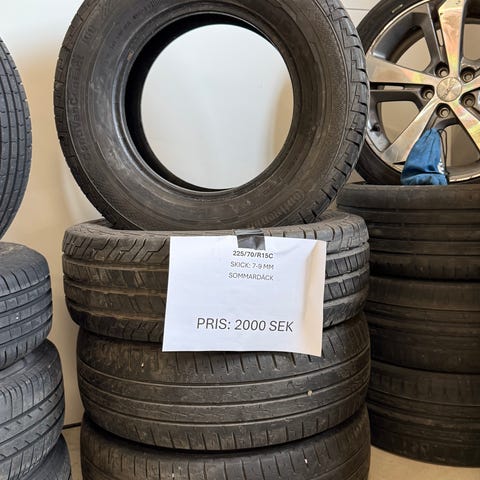 Bra sommardäck. Använda en halv sommarsäsong. En fälg är repad därav priset.