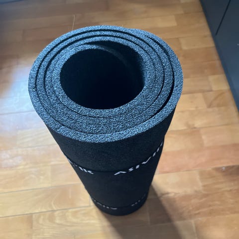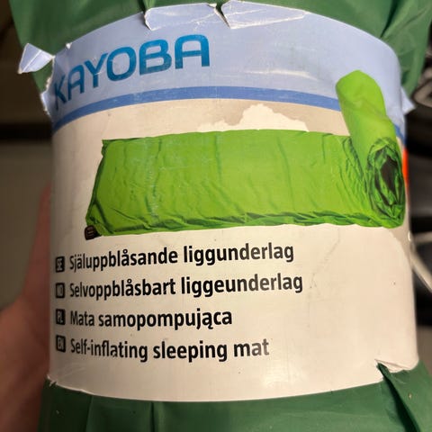 Svart liggunderlag från Trangoworld, uppblåsbart med ventil i hörnet. Går att rulla ihop och spänna med remmar och förvaras i medföljande påse med dragsko.