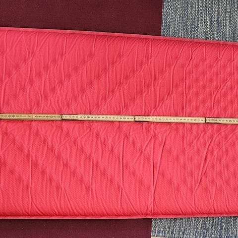 Tjocklek ca 2,5 cm. Längd 188 cm , bredd 50-30 cm.