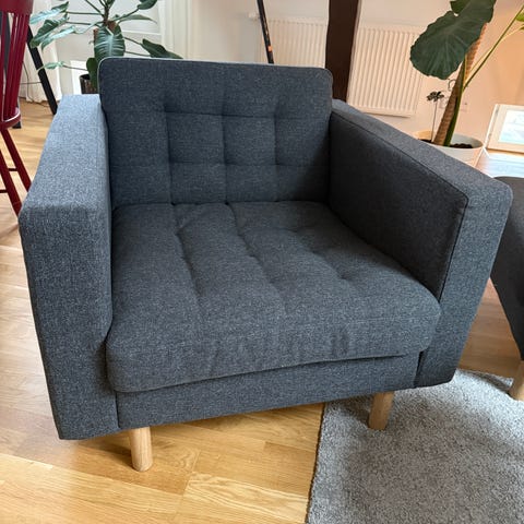 Säljer en stilren och bekväm soffgrupp ur IKEA Landskrona soffserie i färgen Gunnared mörkgrå.