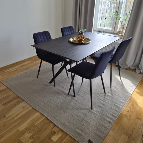 IKEA LANGSTED matta i storlek 133x195 cm i en beige/off white färg. Låg, mjuk lugg som funkar bra under matbord eller soffbord.
