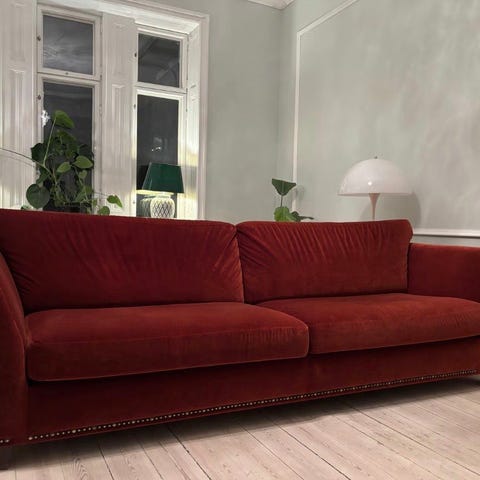 Soffan är i fint skick med en grön sammetsklädsel som är skön och tålig. Dynöverdragen är tvättbara. Det finns allergivänliga hundar i hemmet. På Sweef hemsida finns all fakta. Viss fakta även på bilderna.
