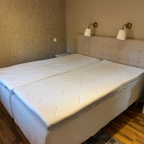 Ljusgrå rammadrass/resårmadrass 90 cm från Sängfabriken.