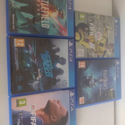 Tre PS4-spel: MX vs ATV All Out, Cars 3: Driven to Win och Dirt 5. Alla i originalfodral med omslag fram och bak.