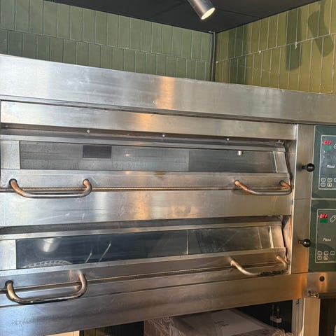 Rostfri pizzaugn från Sveba Dahlin Rendy med två ugnsrum 6*6 pizzor och glasluckor. Digital panel på sidan och belysning i ugnen gör den enkel att använda. Ungen är i drift.
