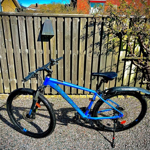 Säljer en Crescent mountainbike med dämpad framgaffel, skivbromsar och 27,5” hjul.