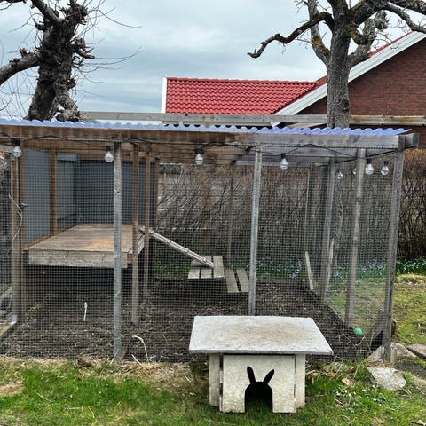 Renoverad kaninbur i fint skick med plåttak och aluminiumram.