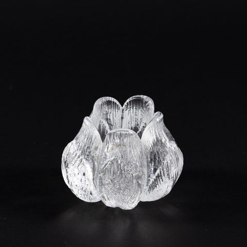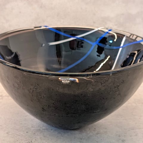 Glaslykta från Kosta Boda i skålform med gråsvarta toner. Fin som dekoration på bord eller fönsterbräda.