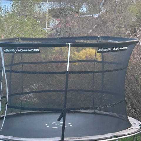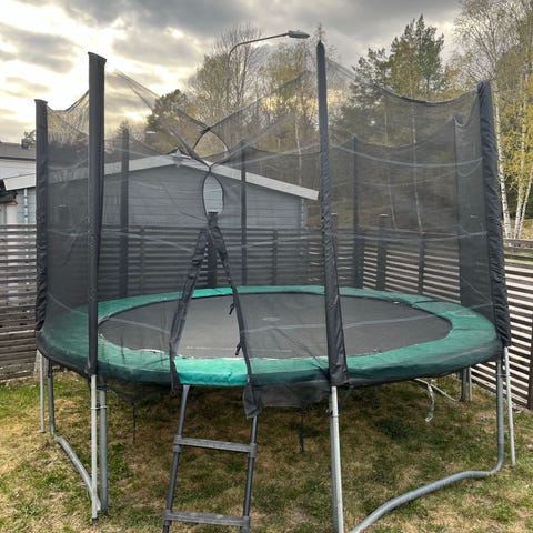 Studsmatta med skyddsnät rund bortskänkes