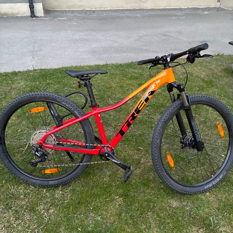 Trek Marlin 7 mountainbike med 29" hjul och ramstorlek M. Justerbar framgaffel med dämpning och hydrauliska skivbromsar fram och bak.