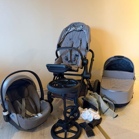 Med sorg i hjärtat behöver vi sälja vår cybex priam då behovet av annan vagn uppkommit. En vagn som rullar bra överallt. Både på asfalt, grusväg, på stigen och vid skidbacken. Utplockad November 2024. Liggdel endast använd i 4 månader. Väldigt fint skick! Endast några få märken som uppkommit av vardagsbruk men som är minimala. Mattsvart chassi. Endast förvarad inomhus(i hemmet, ej förråd eller liknande).
