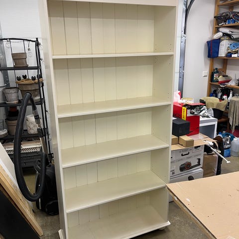 Billy bokhylla i körsbär med ljusa hyllplan. Bortskänkes mot hämtning. Finns 15 min nordost om Uppsala.