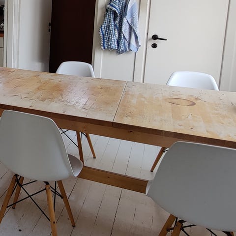 Fin och rymmer totalt 6-8 platser runt utan problem! En liten skråma i hörnet men upptäckte det nu när jag fotade, inte sett det tidigare så ingenting som stör.