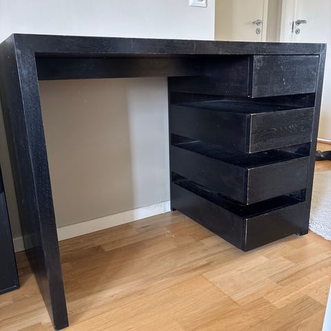 Säljer fint skrivbord pga flytt. Bord i trä och ben i brun metall. En liten överhylla på bordet samt två lådor. Den vänstra lådan funkar men kärvar lite, därav ett lägre pris. I övrigt inga tecken på användning!