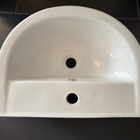Vitt tvättställ/handfat för badrum med hål för blandare. Bredd 50cm x djup 29 o 39 cm.