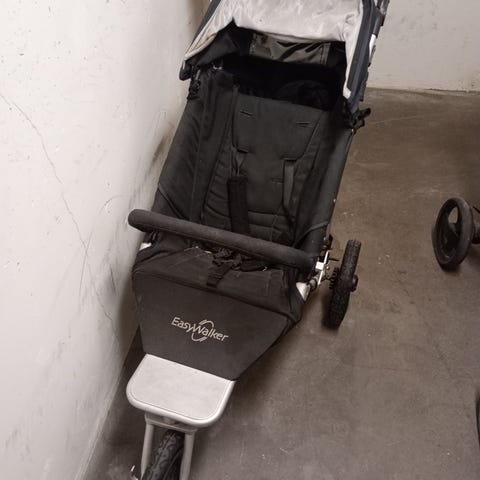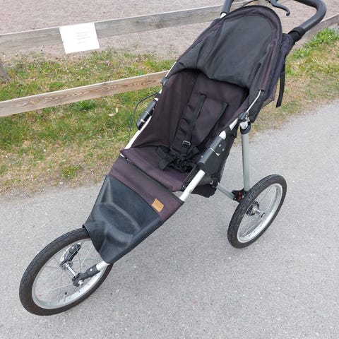 Fin joggingvagn, fungerar bra. Lätt, enkel att fälla ihop och man kan ta av framhjulet enkelt så blir den mindre.