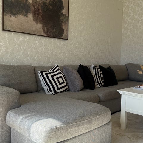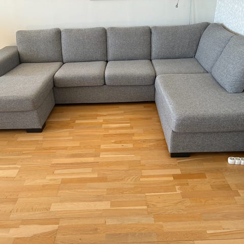 Hej! Det är en väldigt fin stor u soffa i grå färg kostade runt 20tkr ny , den är i helt skick det enda är att den har lite fläckar som behövs rengöras. Vi håller på att flytta just nu så har inte lust till att rådda med rengöringen därför säljer vi den som den är för ett lägre pris.