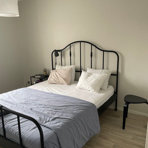Jag har klätt om sänggaveln till beige och har även sängkappa på men den omklädda gaveln är lätt avtagbar.