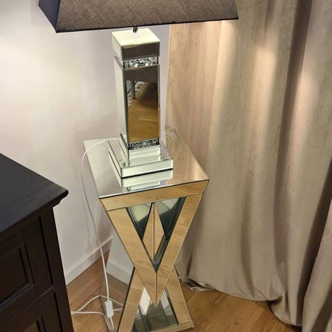 Säljer ett dekorativt set med två spegelpelare och två matchande lyktor i glas och spegel. En stilfull inredningsdetalj som passar fint i t.ex. vardagsrum, hall eller vid fest och bröllop.