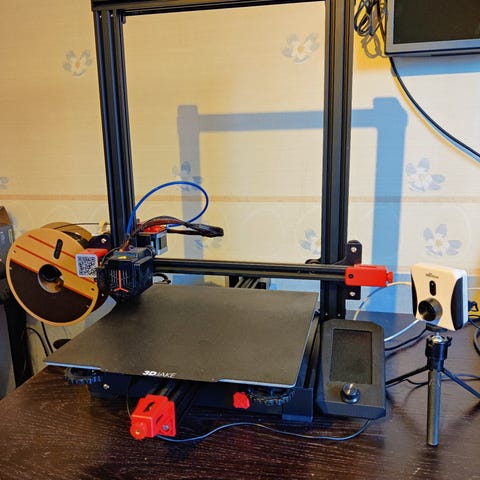 Skrivaren är extrautrustad med Octoprint (installerad på en Raspberry pi) som gör det möjligt att skicka utskriftsfiler trådlöst via WiFi från datorn till skrivaren samt övervaka utskrifterna på distans med den tillhörande kameran.