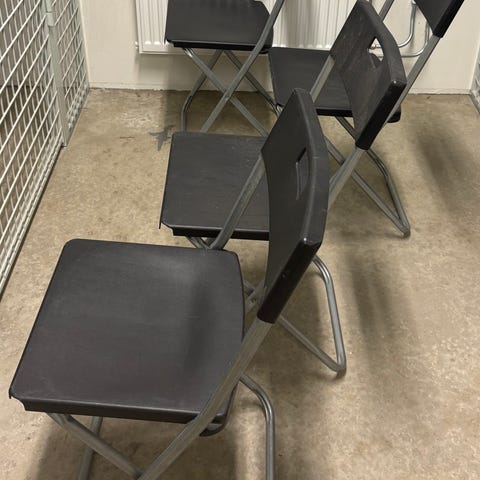 4 stycken klappstolar i svart trä. Modellen heter Terje. Perfekt om du behöver extra sittplatser som är enkla att förvara. Går tex att hänga upp på en krok.