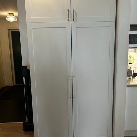 Paxgarderob med hylla, klädstång och två lådor och en korg back utan dörrar. Obetydligt använd.