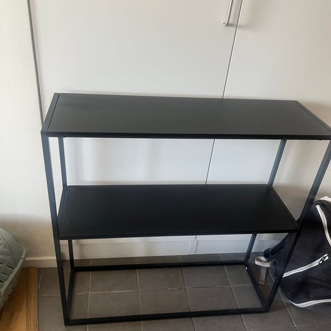 Säljer en hylla från Jysk med fyra fack. En liten utskärning finns i bakstycket så att man enkelt kan dra igenom lampsladd eller kablar.
