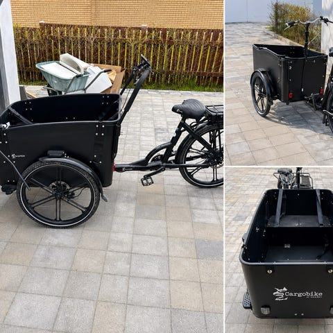 Stabil eldriven lådcykel från Christiania bike. Låda med sittbänk, ett tvåpunktsbälte, ett Y-bälte samt kapell. Motordrivning på bakhjulet och med 8 växlar. Cykeln är inköpt 2018-09-07 och originalkvitto finns.
