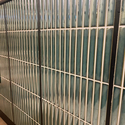 Mosaikplattor i blåa och vita nyanser, monterade på nät i små kvadrater. Flera ark i både mixade blå toner och enfärgade ark, bra till t.ex. vägg i badrum. Kartongerna är i sämre skick efter att ha förvarats utomhus under presenning, men mosaiken är i bra skick.