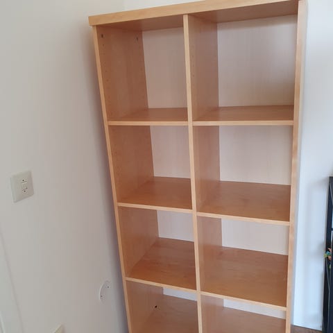 Bokhylla i ljust trälaminat, gott skick. Skänkes mot upphämtning