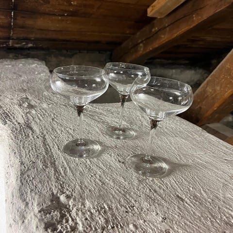 Tre lite längre vinglas. Passar bra till både champagne och vin! Misstänker ett finare märke men har tyvärr inte kvar någon märkning eller kartong så vet ej vart de är ifrån. Säljer de därför billigt!