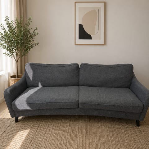 Lätt svängd 2/3-sits-soffa och tillhörande fåtölj. Brunbeige