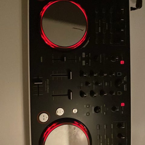 Säljer en Pioneer DJ-kontroller i vitt. Fint skick, fungerar som den ska. Två jog-wheels, mixerbord med faders och knappar. Ansluts via USB/Lightning.