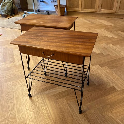 Paret sängbord i teak från AB Carlström Möbelfabrik (märketiketter finns kvar), stilrena klassiker från 60-talet i fint skick!