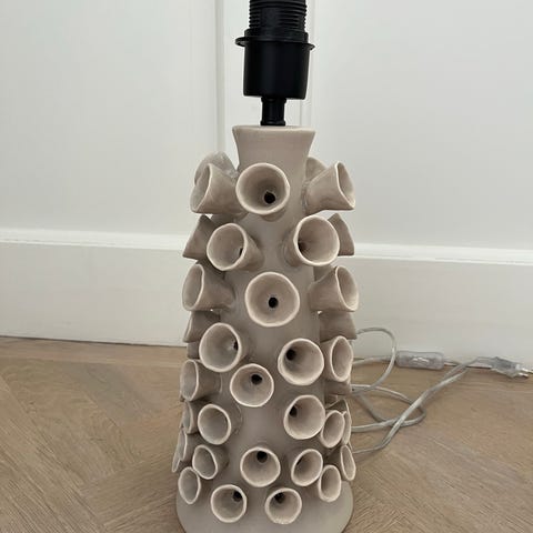 En bordslampa från Hackefors Porslin. Lampan har en dekorativ design med blommor och guldkant. Sladd med strömbrytare ingår.