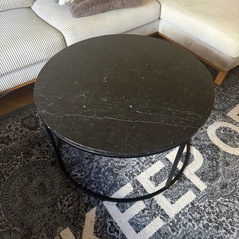 Bordet har en diameter på 80 cm och en höjd på 39 cm, vilket gör det perfekt som soffbord i vardagsrummet. Den runda formen och det luftiga underredet ger ett snyggt och lätt intryck.