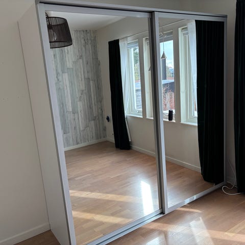 Säljer 4st skjutbara garderobsdörrar i fint skick. Två av dörrarna är vita och två är med speglar. Varje dörr är ca 265cm hög och 77cm bred.