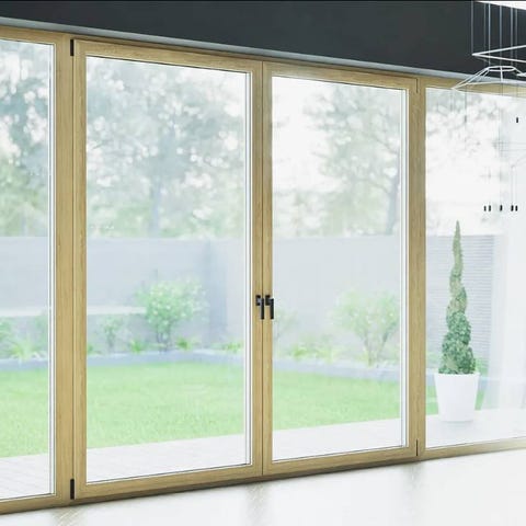 Säljer ett par eleganta och praktiska vikdörrar (dragspelsdörrar) som är perfekta för att dela av rum utan att tappa rymd eller ljus. Dörrarna har en varm träfinish i eklook och fönsterpaneler med frostat/mönstrat glas som ger avskildhet men släpper igenom ljus.