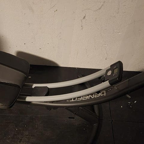 Magtränare. Har skumklädda handtag och benstöd samt hopfällbar ställning som tar liten plats.