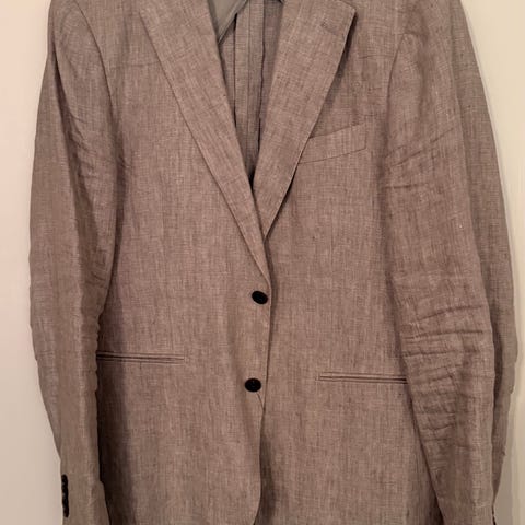 Grön/olivgrön linnekostym, kavaj använd en gång och byxorna fortf oanvända.