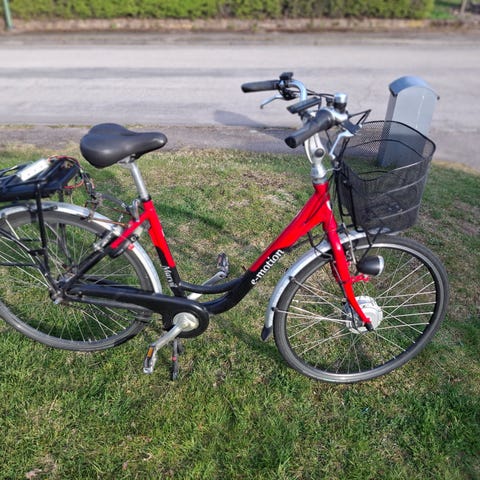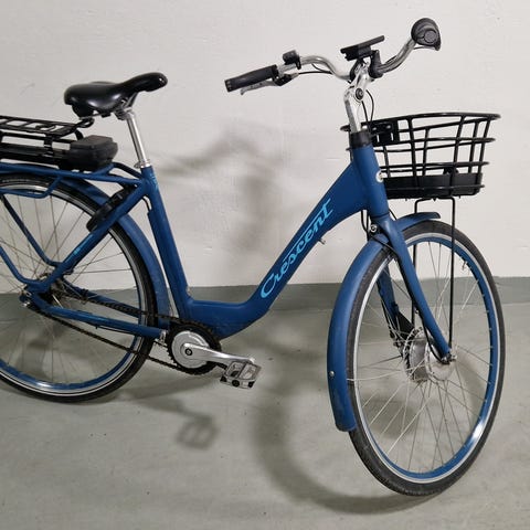 El cykel 28 tum 7 växlad med fotbroms handbroms korg lyse lås tillbåde cykel å batteri laddare i fint skick
