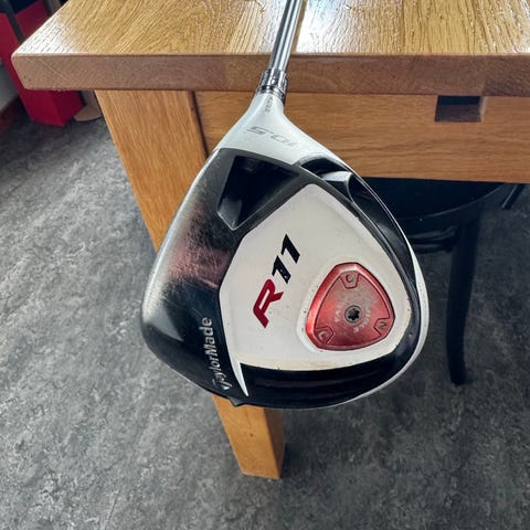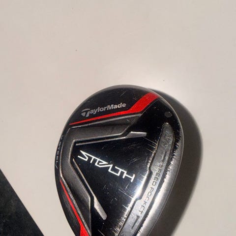 TaylorMade M6 hybrid 4 med Fujikura regular skaft, svart och silver med röda detaljer. 22 grader, grepp i bra skick