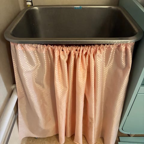 Använts i tvättstuga tidigare. Kan säkert komma till användning exv. inbyggt i ett utekök.