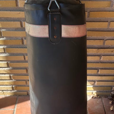 Svart boxningssäck från Casall med metallringar för upphängning. Stadig modell. Kräver kedja att hänga upp i öglorna. H: 65cm, diameter: 30cm.