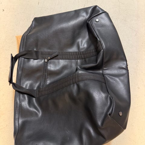 Svart shopperväska från H&M i fuskläder med två längre axelremmar. Stor öppen insida med textilfoder och en mindre innerficka.