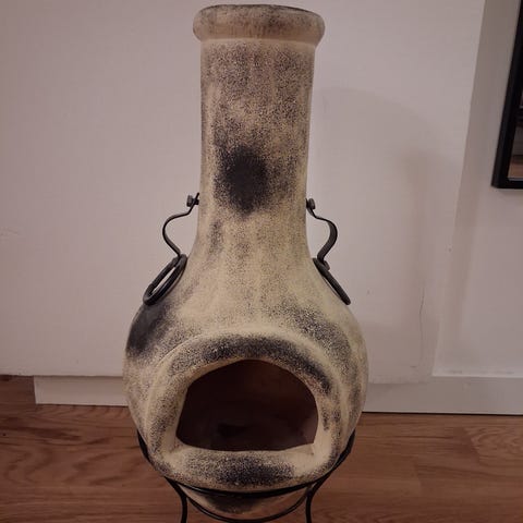 Dekorativ, originell, Sv. tillverkad, hantverk,mått: höjd 30 cm , diameter överkant 30 cm, med lock, idealisk för ved etc intill braskamin, spis m m