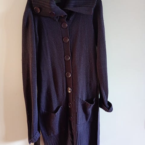 Fin stickad kofta med fickor fram och knäpps med knappar fram och av märket bpc. Material Akryl,polyester . Storleken 44/46. Nyskick.
